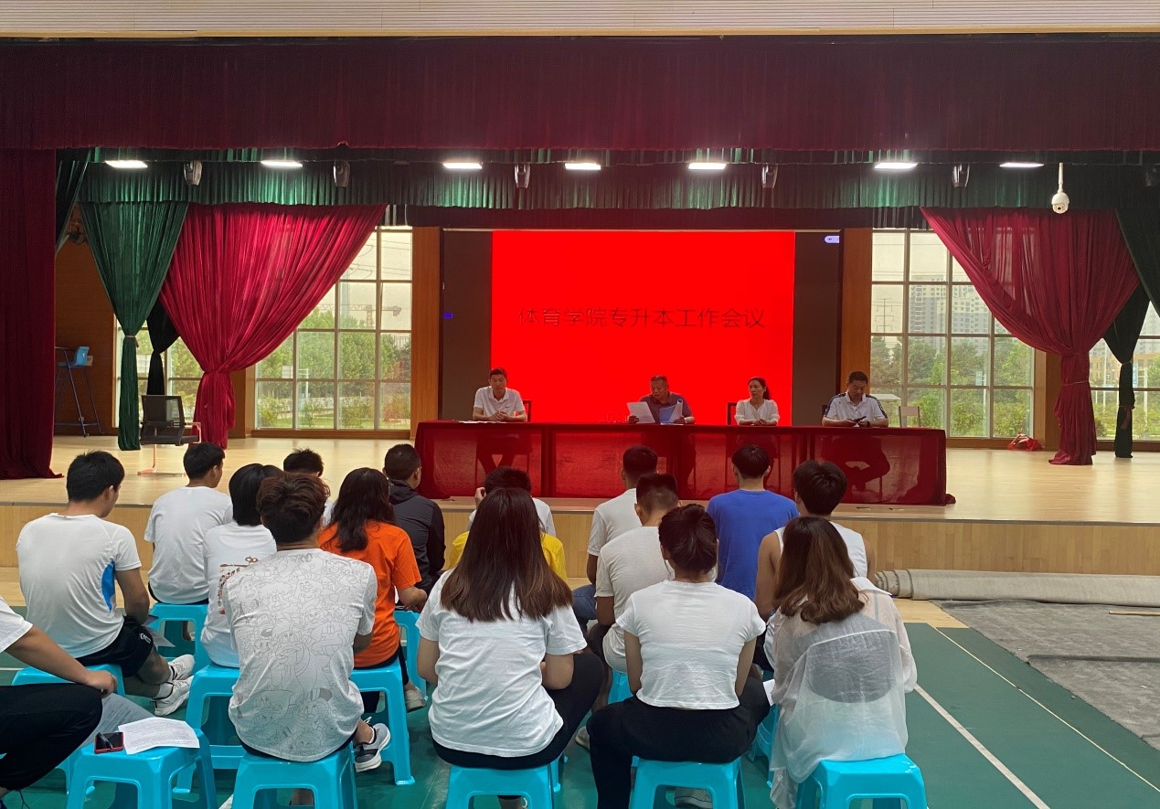 2021年6月2日,我校2021届专升本学生回到熟悉的校园。为迎接专升本返校生,做好专升本学生的安全教育和诚信考试工作。体育学院院长、体育学院副院长王朝霞、体育学院学管办主任李海磊、体育场学院办公室主任袁鹏科出席了本次会议。