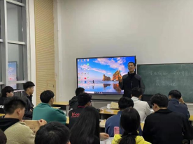 李海磊主任以“小短片”和“PPT”动漫人物演示讲解大学生心理可能面临的问题,并细致解答,学生认真学习观看。